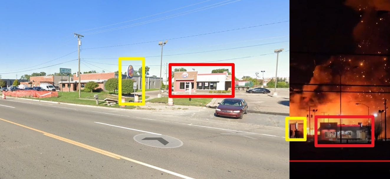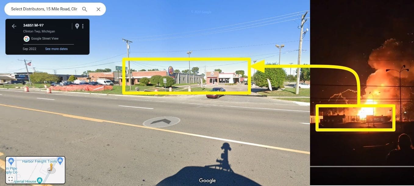 علاوة على ذلك؛ يمكن مقارنة معالم المنطقة حول مصنع Select Distributors التي توفرها خرائط جوجل مع المعالم الظاهرة من المقطع كما يلي: