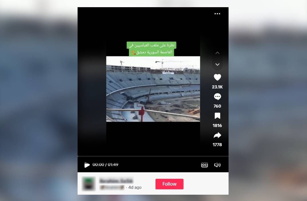 هذا المقطع يظهر عملية تحديث ملعب طنجة الكبير في المغرب استعدادًا لاستضافة كأس إفريقيا 2025، ولا يصور مشاهد من ملعب العباسيين في دمشق