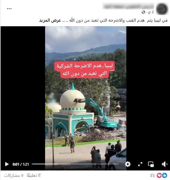 هذا المقطع لا يصور هدم أضرحة في ليبيا مؤخرًا، بل يعود إلى هدم منتزه هيبيسك الترفيهي في إندونيسيا مارس الماضي
