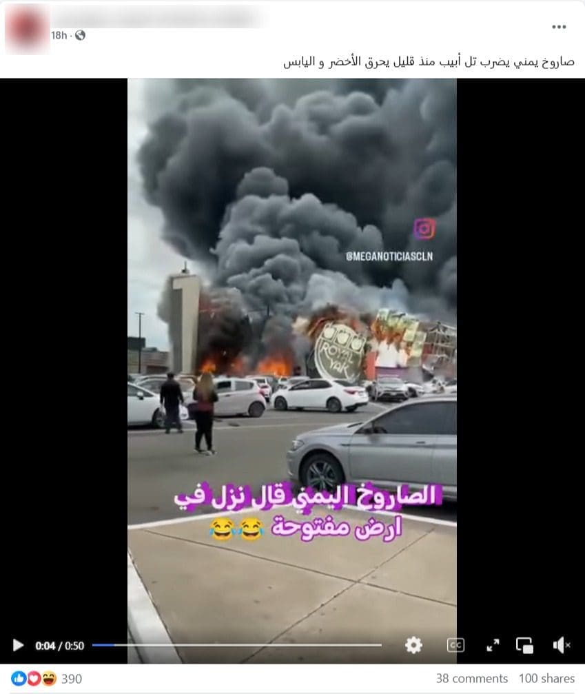 هذا المقطع قديم، ويعود إلى احتراق كازينو “رويال ياك” في المكسيك، ولا يصور انفجار صاروخ أطلقه الحوثيون على تل أبيب