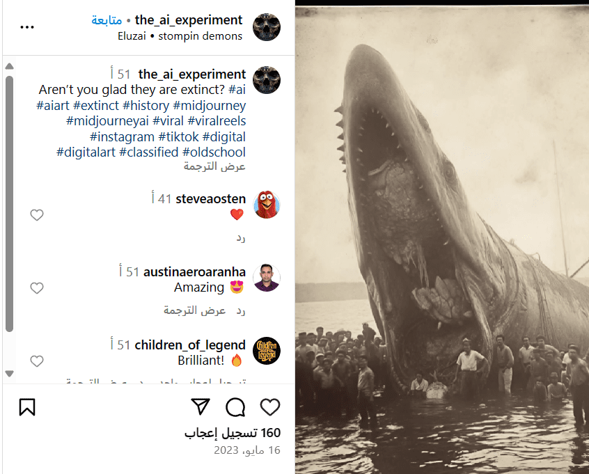 حيث نشر الصورة ذاتها ضمن مقطع فيديو يتضمن مخلوقات أخرى غير حقيقية مع تعليق: ” ألسنا سعداء بأنها انقرضت”،
