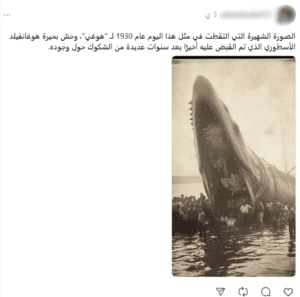 تداول ناشطون على مواقع التواصل صورة يدعون انها التقطت عام 1930 لوحش أسطوري كان يعيش في بحيرة هوغانفيلد في اسكتلندا،