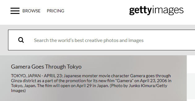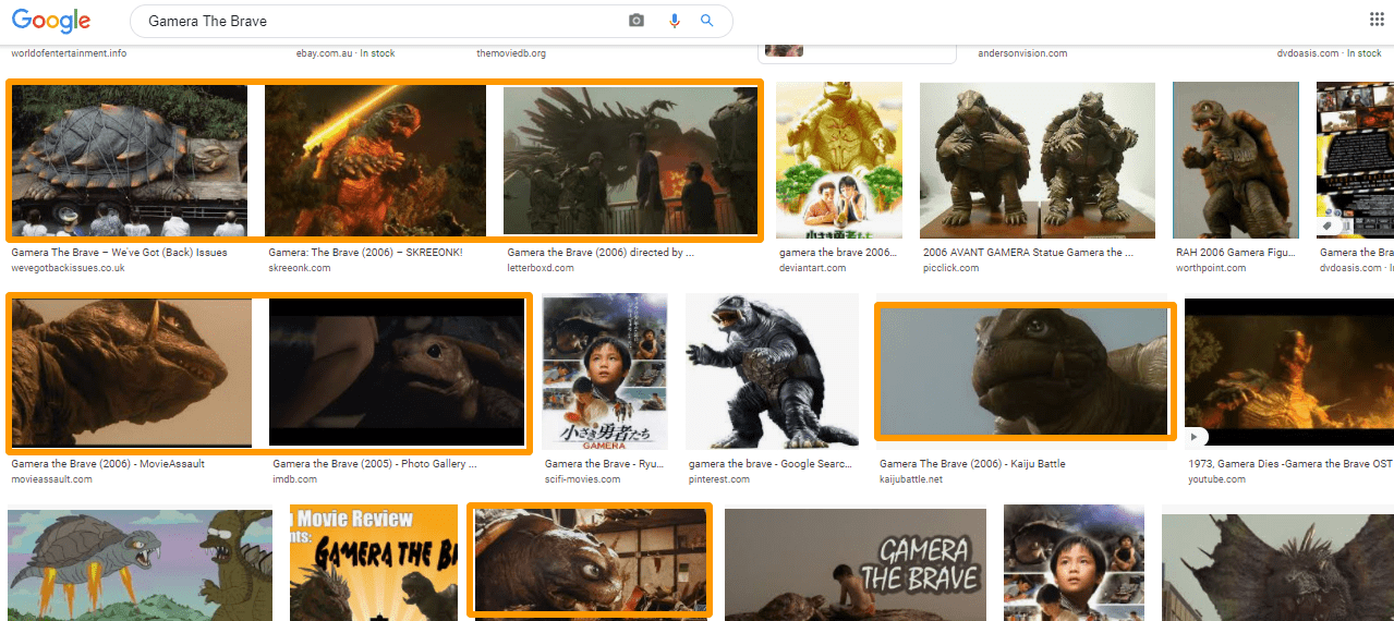 ومن خلال البحث عن اسم الفيلم “Gamera The Brave” في محرك البحث غوغل،