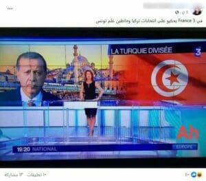 فيما بينت أنها تظهر خطأً وقعت به القناة الفرنسية الثالثة France3، عندما عرضت العلم التونسي في الخلفية بدلًا من العلم التركي،