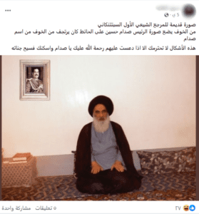 اقرأ أيضًا: هذه الصورة مفبركة ولا تظهر السيستاني برفقة صدام حسين – فتبينوا