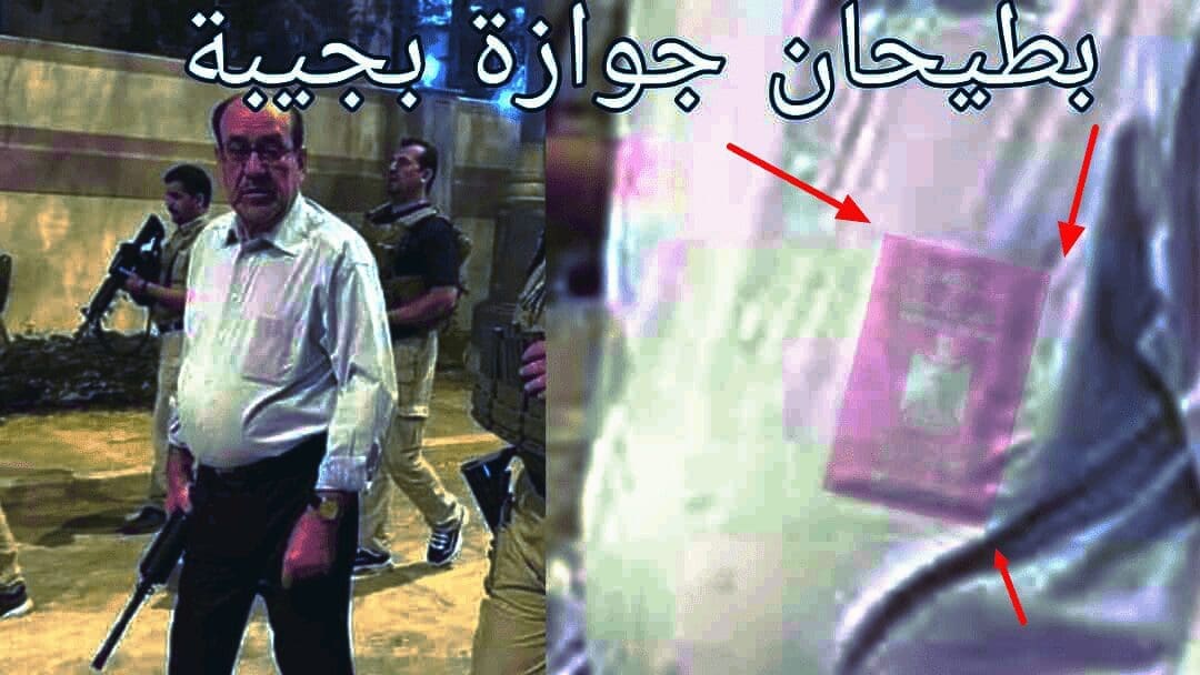 هذه الصورة مفبركة لنوري المالكي والصورة الأصلية لا تظهر جواز السفر