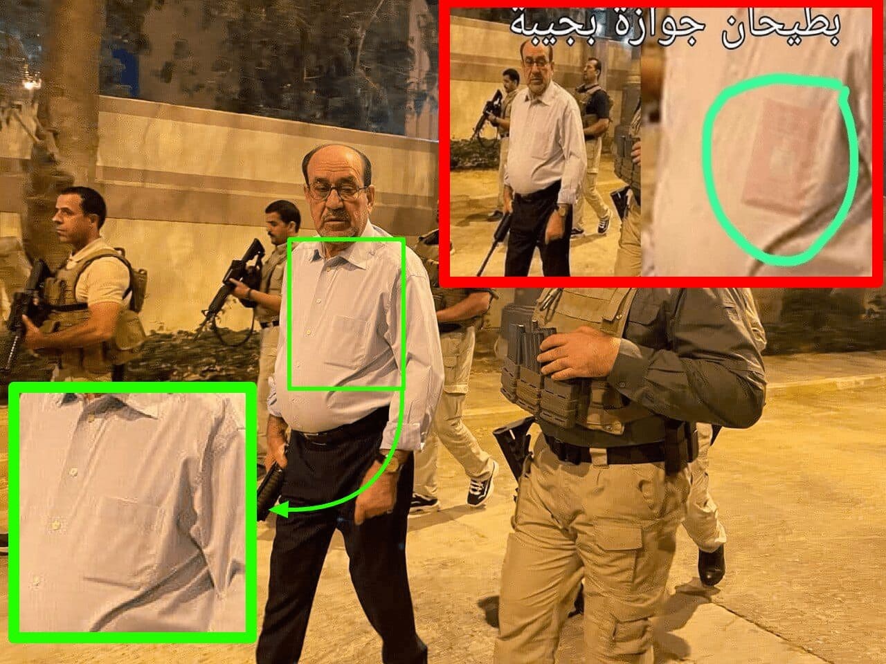 انتشرت على مواقع التواصل الاجتماعي صورة يزعم ناشروها أنها تظهر جواز سفر بجيب قميص نوري المالكي، فما حقيقة هذه الصورة؟