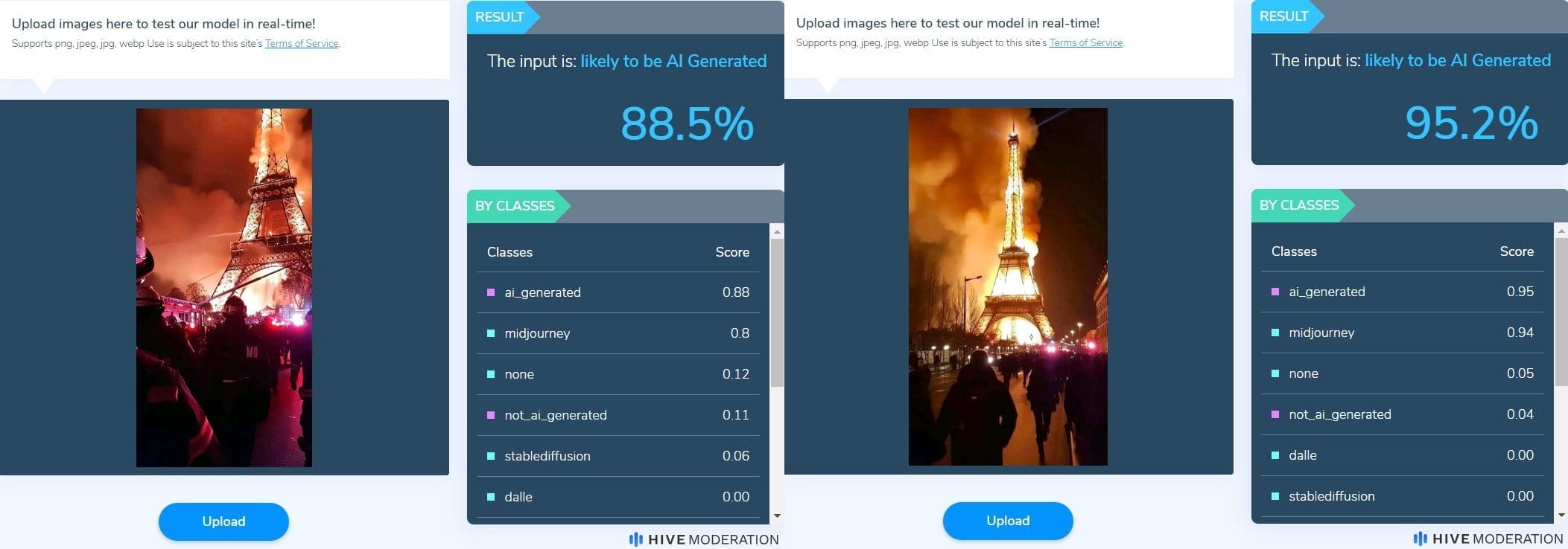 ومن خلال استخدام أداة Hive AI detector، المخصصة لفحص الصور المولدة بواسطة الذكاء الاصطناعي،