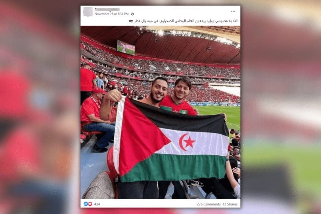 يرفعون علم الصحراء الغربية في أحدى ملاعب المونديال في قطر،