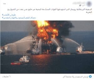 هذه الصورة تعود لانفجار منصة نفط في خليج المكسيك عام 2010 وليس للسفينة البريطانية التي أعلن الحوثيون استهدافها مؤخرًا