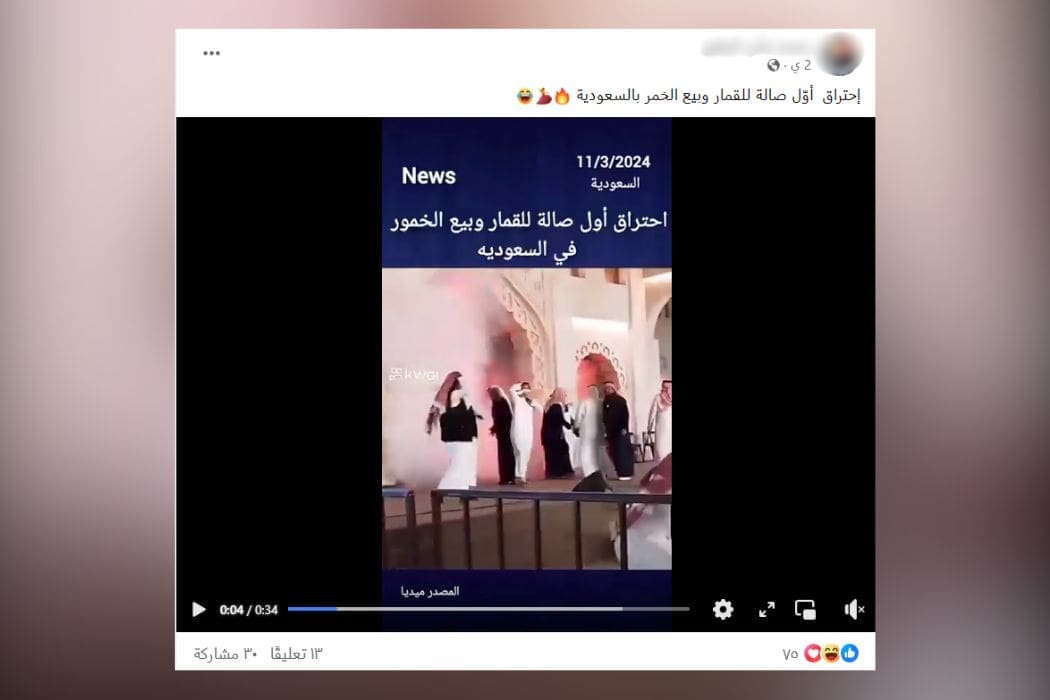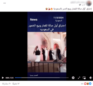 في هذا السياق، تناقل ناشطون على فيسبوك مقطعًا يدعون أنه يصور احتراق أول صالة للقمار وبيع الخمور في السعودية،