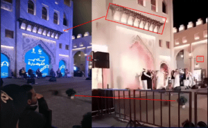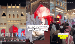 مطابقة معالم مقطع الادعاء – إلى اليمين – مع مشاهد متداولة لمهرجان ليالي القيصرية 2024