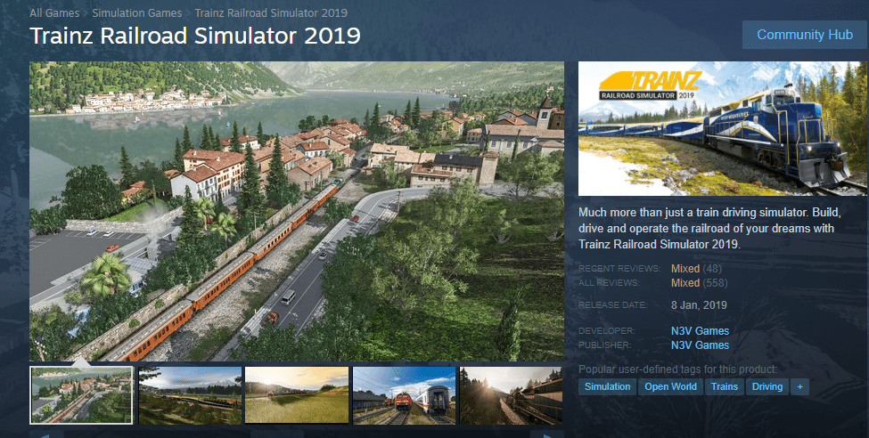 والبحث عن اللعبة في محرك البحث غوغل باستخدام اسم اللعبة الموجود في مقطع الادعاء على اليوتيوب (Trainz Railroad Simulator 2019)، عثرنا عليها في متجر ستيم وهي لعبة محاكاة للقطارات ويمكنك من خلالها اضافة التعديلات الخاصة بك على القطار والتعديل على معالم اللعبة وطريقة عملها وكان هناك مواقع مخصصة لهذه الاضافات هنا، هنا