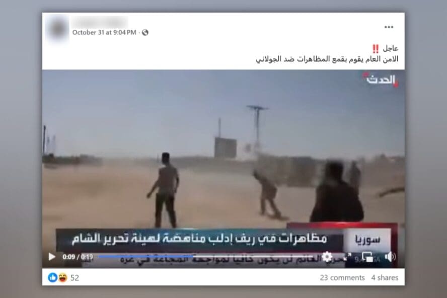 هذا المقطع قديم، ويعود لمظاهرات مناهضة لهيئة تحرير الشام في مايو 2024، ولا يصور المظاهرات الأخيرة في إدلب2 نوفمبر 2025مضلل