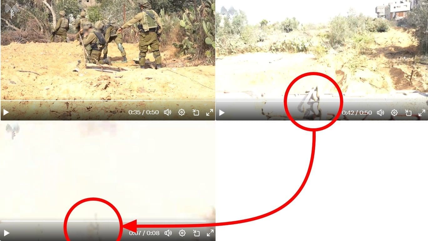 وقع فريق منصة «فتبينوا» على المشاهد ذاتها ضمن مقطع مطوّل، نشرها الحساب الرسمي للجيش الإسرائيلي على منصة X بتاريخ 03 ديسمبر 2023،