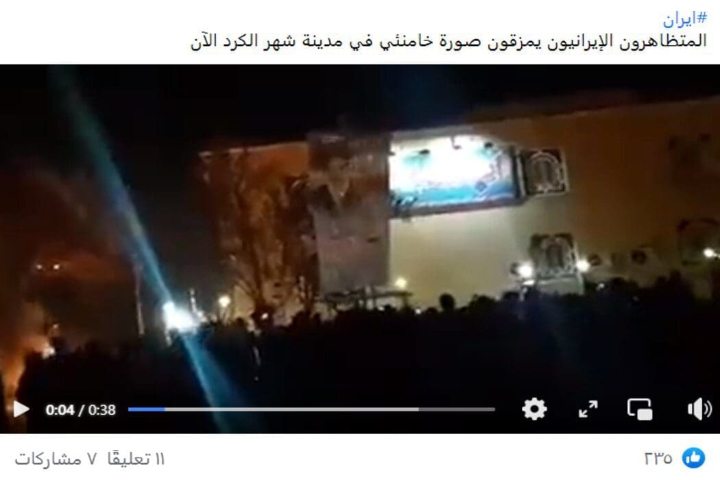 إثر ذلك، تداول رواد مواقع التواصل مقطعًا يزعمون أنه يظهر محتجين يقومون بتمزيق صورة علي الخامنئي في مدينة شهركرد مؤخرًا،