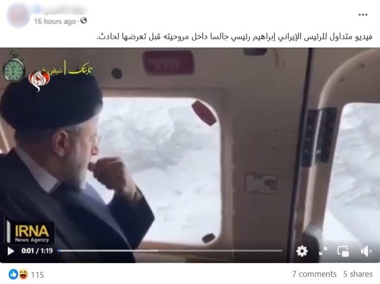 إثر ذلك تداولت حسابات على مواقع التواصل الاجتماعي، مقطع فيديو يدعون انه يعود للرئيس الإيراني قبل تعرض مروحيته لحادث،