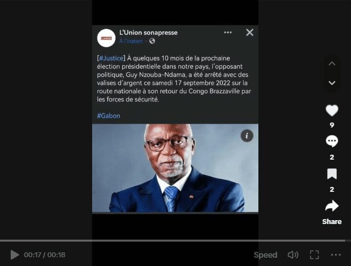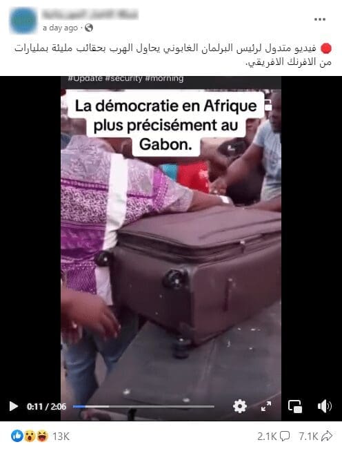 تناقل ناشطون على فيسبوك مقطع فيديو يدّعون أنه يظهر القبض على رئيس البرلمان الغابوني أثناء محاولته الهرب بحقائب مليئة بالأموال.