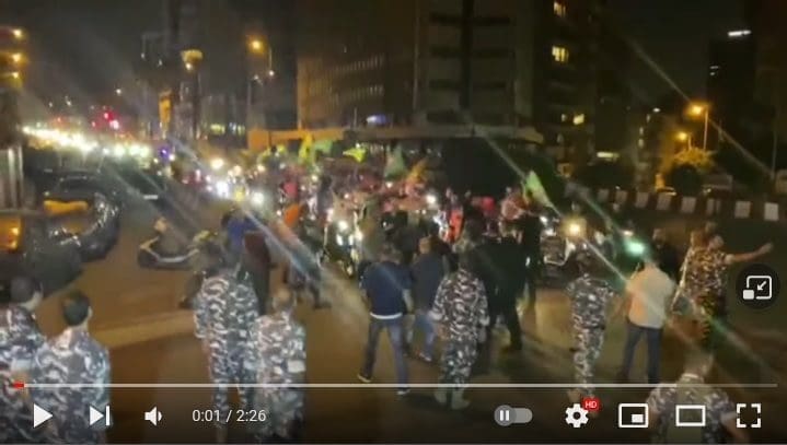 حيث انطلقت مسيرة دراجات نارية تحمل أعلام جماعة حزب الله وحركة أمل، مؤيّدة لرئيس مجلس النواب نبيه بري الذي كان يهتف أصحاب الدراجات باسمه في المقطع،