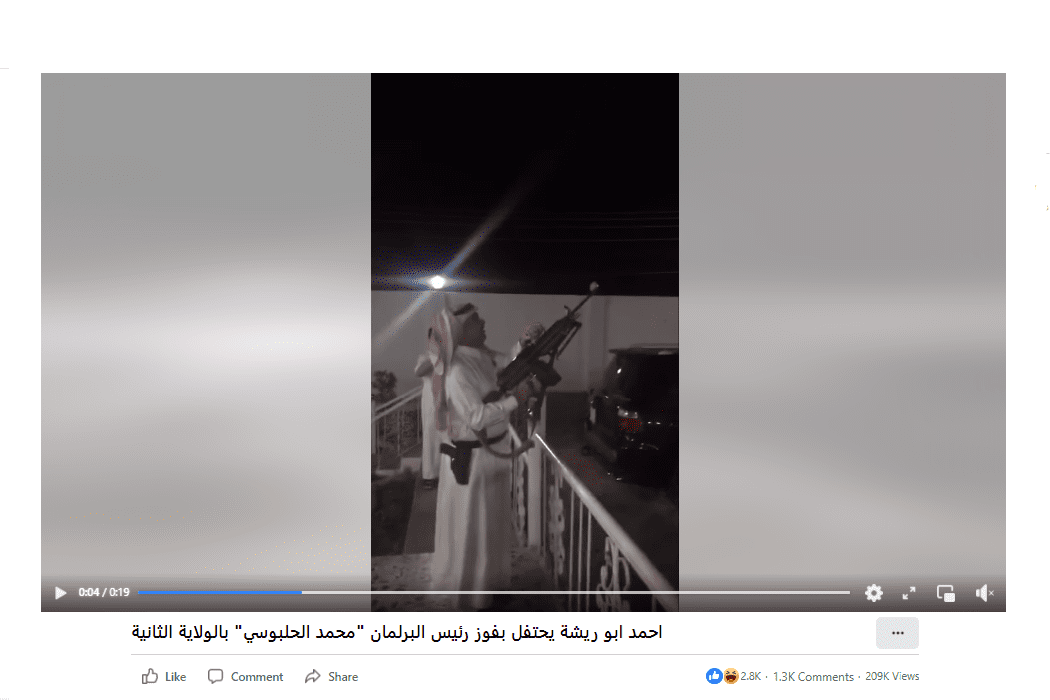 كما شاركته صفحات أخرى بتاريخ ذاته في سياق احتفال احمد أبو ريشة بفوز سعدون الدليمي بالانتخابات البرلمانية عن قائمة الأنبار هويتنا عام 2018،