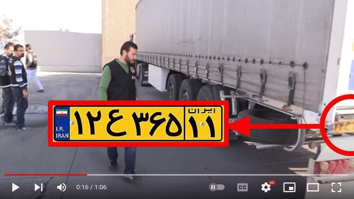 فيما يمكن مطابقة لوحة تسجيل المركبات الإيرانية، مع اللوحة المثبتة على شاحنة النقل،