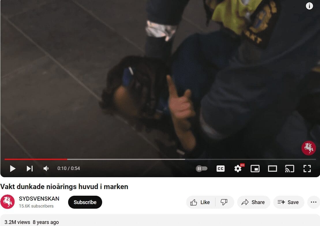 إذ نشرت المقطع ذاته ولقطات منه العديد من المواقع الإخبارية المحلية في 11 فبراير 2015، تحت العنوان -بدون تصرف-: رجل أمن سويدي يحاول خنق طفل ينطق بالشهادتين (فيديو)