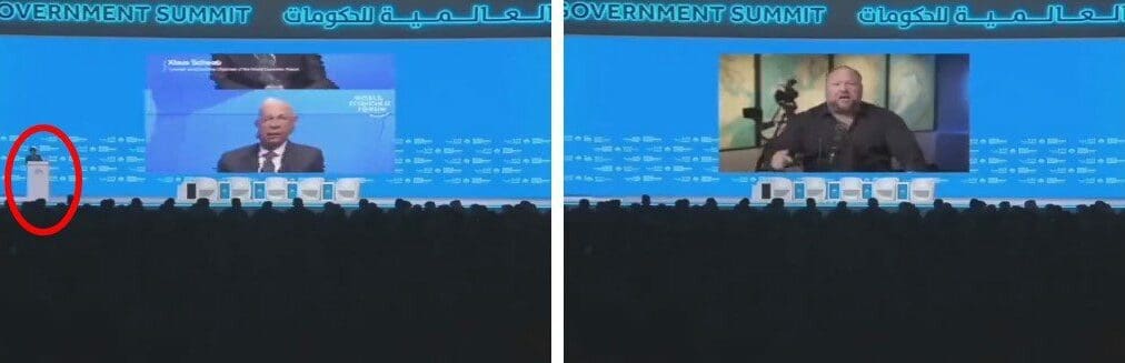 خلال القمة العالمية للحكومات في دبي ، تمّ خرق البث المباشر من قبل أليكس جونز وأنهال عليهم بالشتائم.#سياسة_وكذا