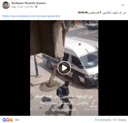 نشرت صفحة Ibraheem Mustafa Qutami على موقع التواصل الاجتماعي فيسبوك مقطع فيديو وأرفقته بالنص الوصفي الآتي (من دون تصرّف):