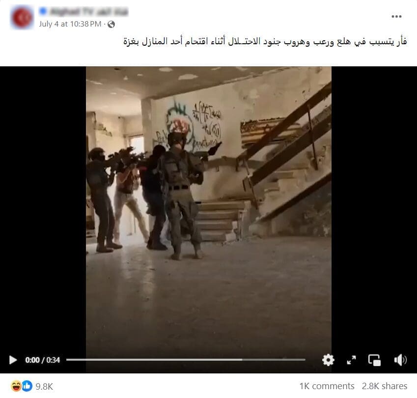 هذا المقطع ليس لهروب جنود إسرائيليين من فأر أثناء اقتحامهم لبيت في غزة، بل يعود للعبة قتالية واقعية في بيت دغان