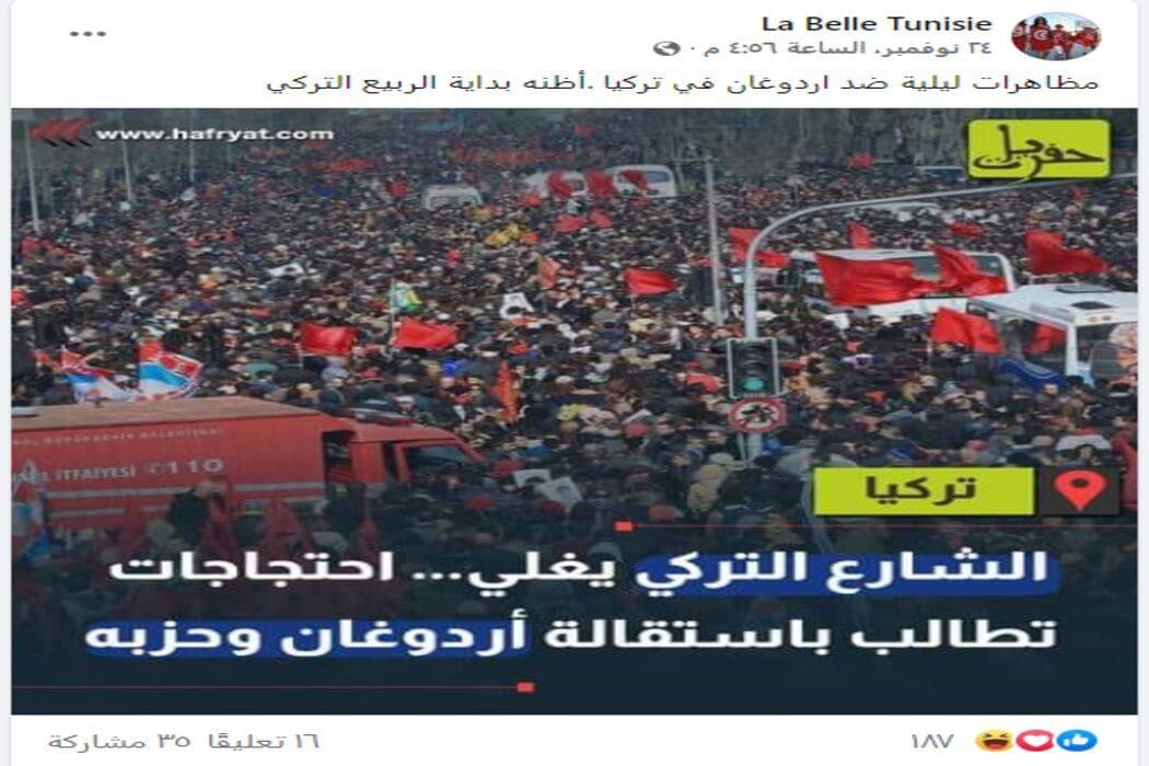 هذه الصورة المتداولة قديمة ولا علاقة لها بالاحتجاجات الحالية في تركيا