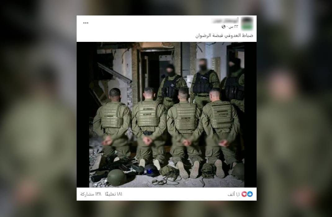 هذه الصورة غير حقيقية ولا تُظهر اعتقال جنود إسرائيليين من قبل قوة الرضوان التابعة لحزب الله في لبنان