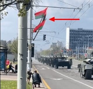 فيما يظهر العلم البيلاروسي في لقطات الادعاء كما في الصورة الآتية،