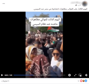 هذا المقطع قديم والصوت فيه مركب، ولا يبين خروج مظاهرات في مصر مؤخرًا مطالبة برحيل السيسي
