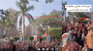 مطابقة مشاهد مقطع الادعاء – إلى اليمين – مع مشاهد متداولة في 20 أكتوبر 2023 لتظاهرات خرجت في مصر دعما لغزة
