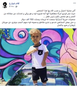 حيث نشر فيديو امرأة متظاهرة أنها أمه تصوره فيه و هو يبكي و تحدثت عن معاناته من التنمر و هو شخص بالغ و ليس طفل …