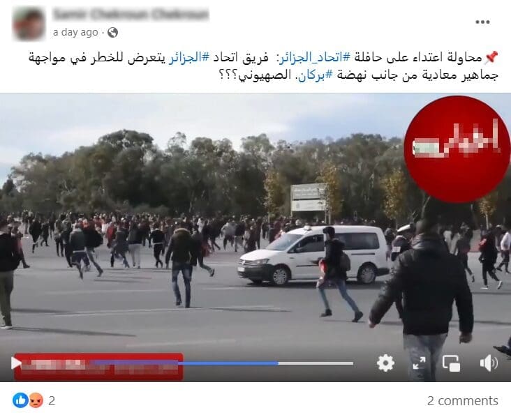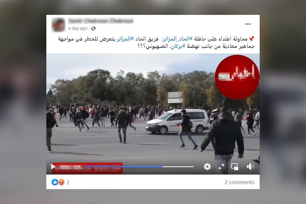 إثر ذلك تداول ناشطون على فيسبوك مقطع فيديو يدعون أنه يظهر محاولة اعتداء على حافلة اتحاد الجزائر،