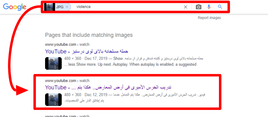أرشد البحث العكسي عن احدى لقطات مقطع الادعاء في محرك البحث غوغل الى مقطع الادعاء ذاته منتشر بتاريخ 2019/12/12 على اليوتيوب