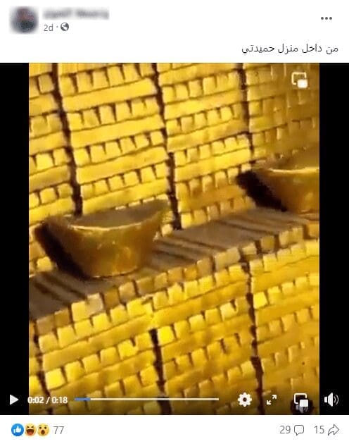 تناقل بعض الناشطين على منصة الفيسبوك مقطع فيديو يدّعي ناشروه أنه يظهر العثور على أطنان من الذهب في منزل حميدتي.