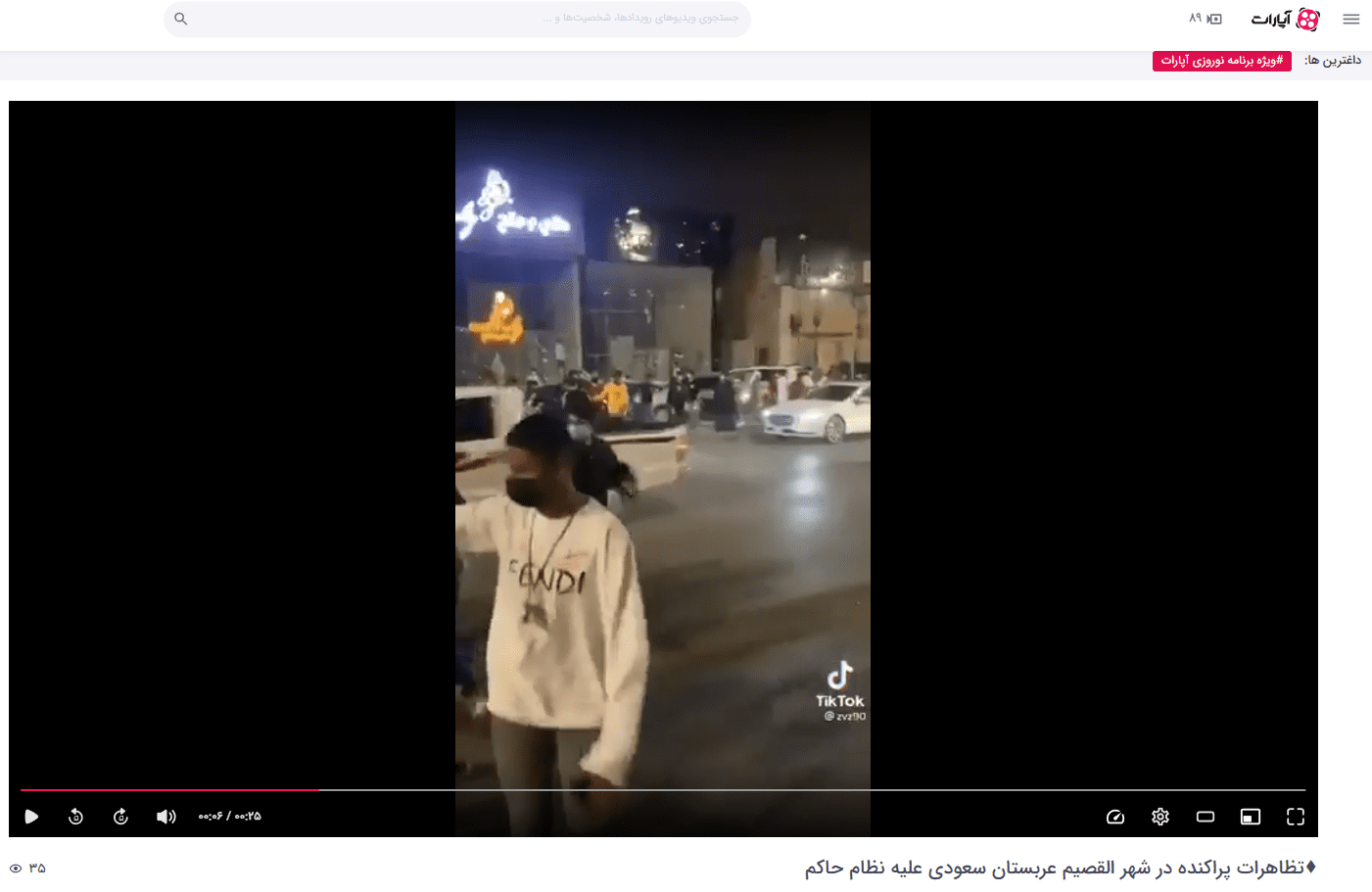 الذي نشر المقطع ذاته بتاريخ 2 فبراير 2021، على أنه يعود لمظاهرات في مدينة القصيم السعودية ضد النظام الحاكم،