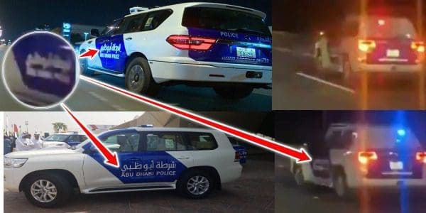 وكان أهم ما يثبت تصوير المقطع في الإمارات هو سيارة شرطة أبوظبي بتصميمها المميز: