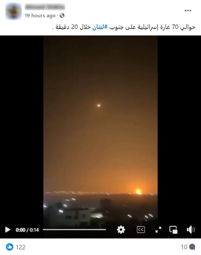 هذا المقطع متداول منذ أبريل الماضي للضربات الإيرانية، ولا يصوّر الغارات الإسرائيلية على جنوب لبنان مؤخرًا