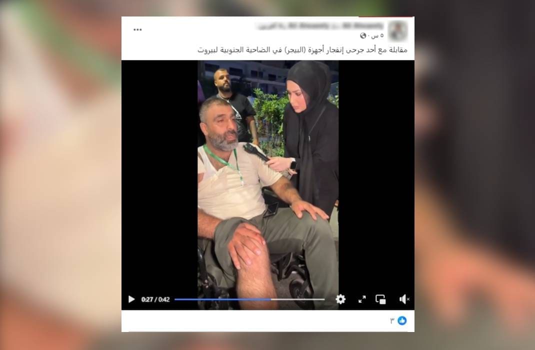 إثر ذلك تداول ناشطون على الفيسبوك مقطع فيديو يدعون أنه يظهر مقابلة مع أحد جرحى انفجار أجهزة البيجر في الضاحية الجنوبية لبيروت،