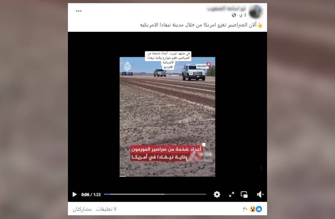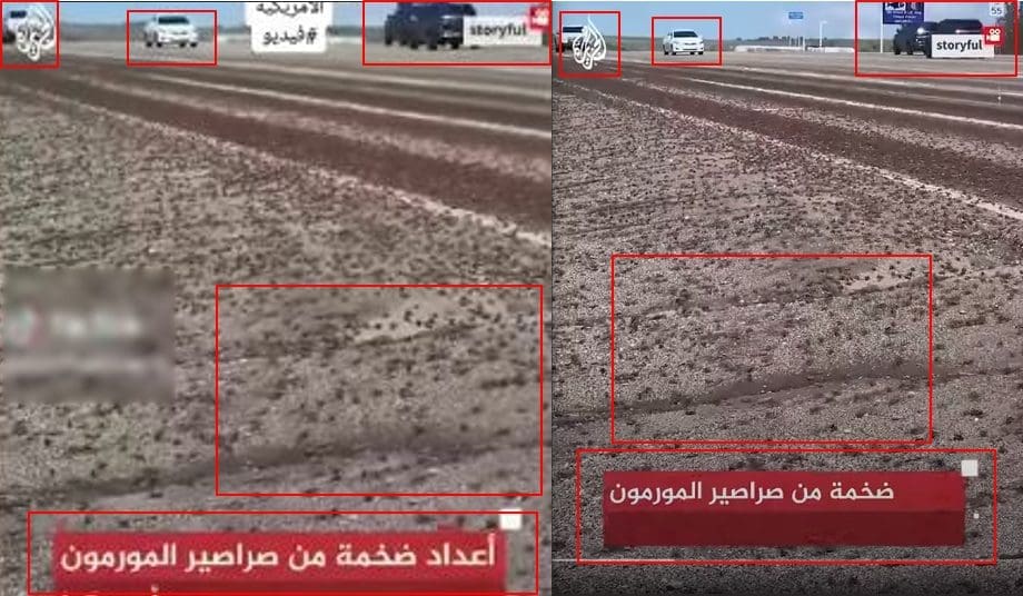 قاد البحث بالكلمات الدلالية في محرك البحث جوجل إلى منصة اليوتيوب، إذ نشرت قناة الجزيرة الإخبارية والتي يظهرها شعارها ضمن مقطع الادعاء المقطع ذاته بتاريخ 17 يونيو 2023، على أنه يظهر أعداد ضخمة من صراصير المورمون تغزو ولاية نيفادا في أمريكا آنذاك