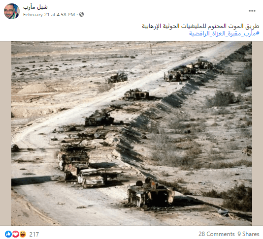 هذه الصورة تعود لحرب الخليج وليس لها علاقة في اليمن