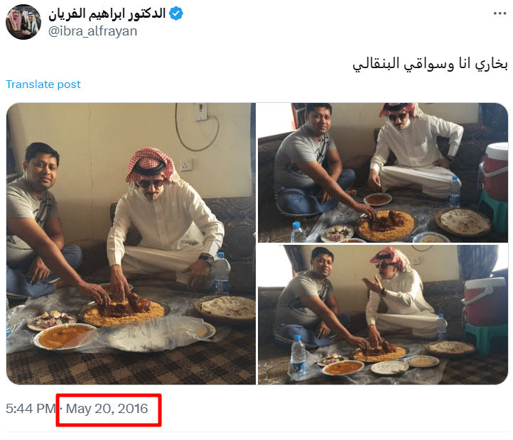 الذي كان قد نشر صورة الادعاء ذاتها وصور أخرى مماثلة في 20 مايو 2016، مرفقاً في وصفها ما يلي -بدون تصرف-: “بخاري انا وسواقي البنقالي”.