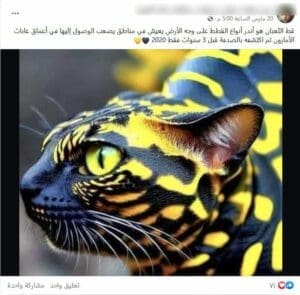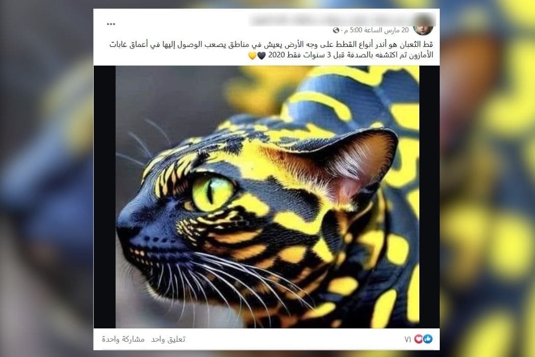 تناقل ناشطون على فيسبوك صورة يدعون أنها تظهر واحدًا من أندر أنواع القطط في العالم يسمى ” قط الثعبان”، تم اكتشافه بالصدفة عام 2020 في أعماق غابات الأمازون،