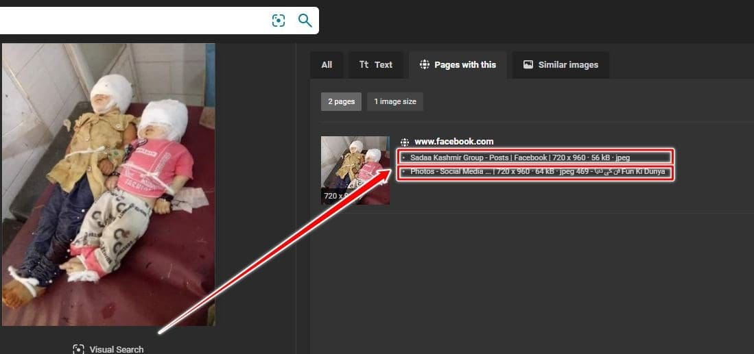 عثر فريق فتبينوا على نتيجة بحث تعود لصفحة Sadaa Kashmir Group على الفيسبوك وكانت الصفحة قد نشرت صورة الادعاء بتاريخ 2020/08/28
