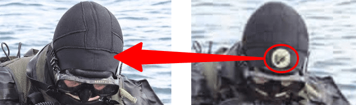 كما يمكننا ملاحظة أن صورة الادعاء تم فبركتها واضافة الشعار على الغواص لتظهر بهذا الشكل،