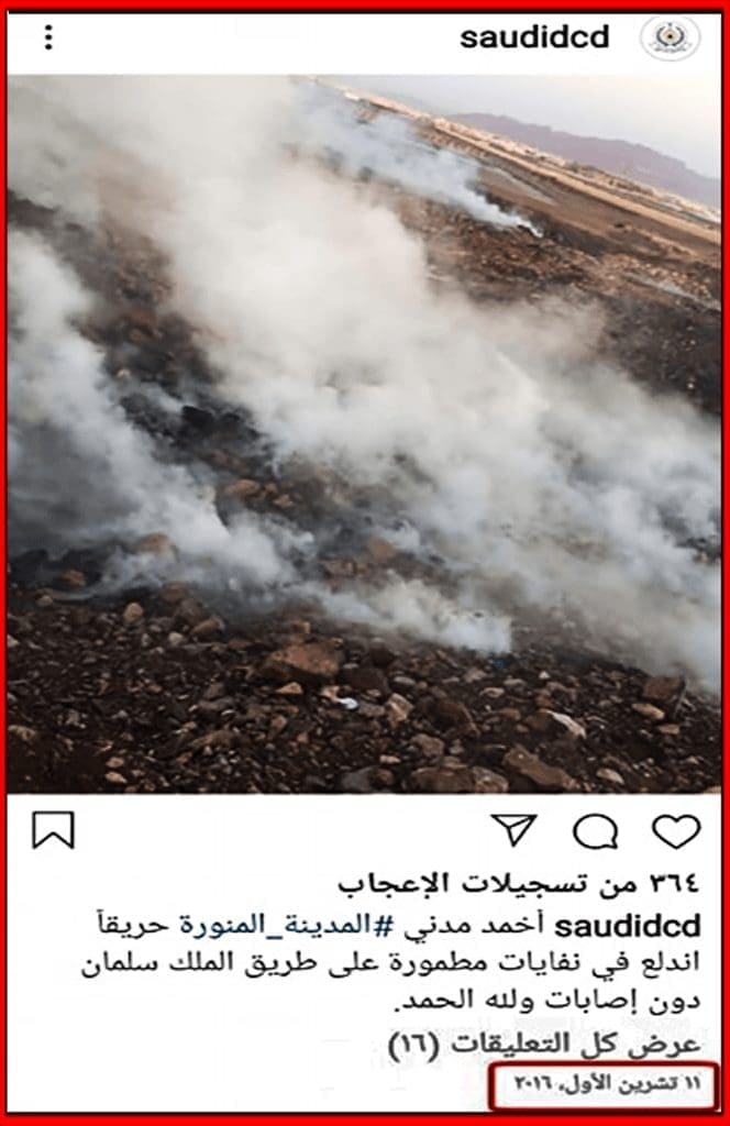 إنما دخان ناتج عن اندلاع حريق في نفايات مطمورة على طريق الملك سلمان