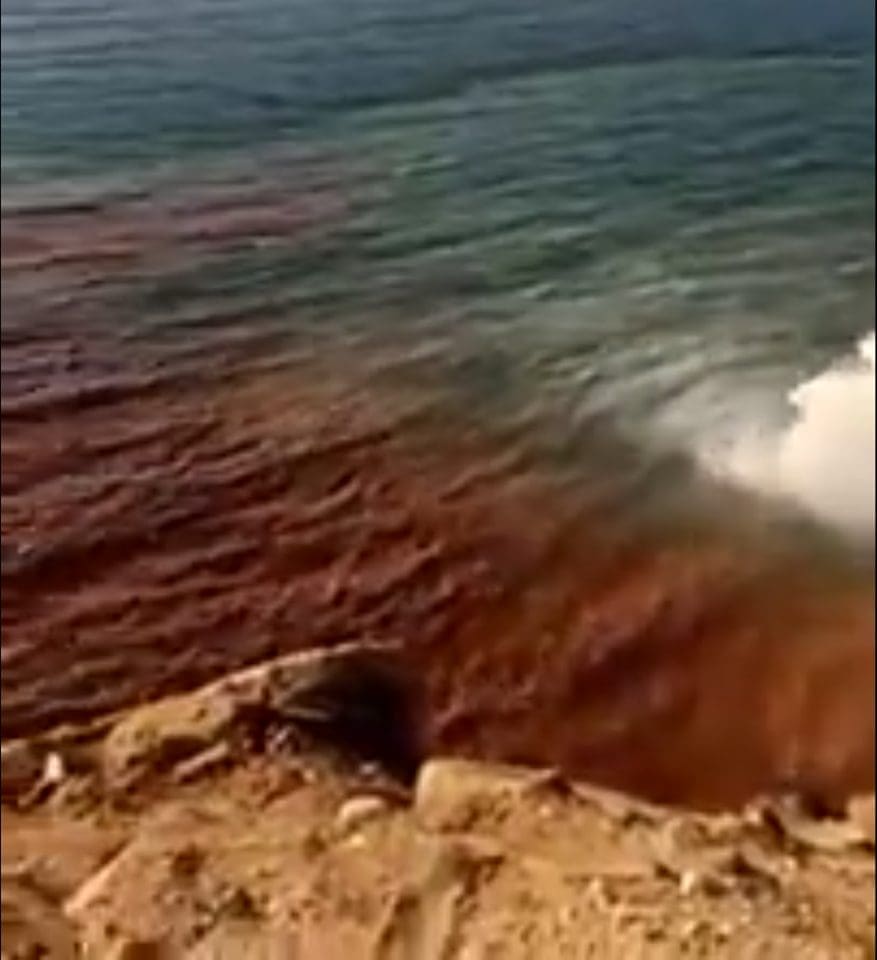 انفجار مياه عذبه في البحر الميت ، منظر غريب جدا الآن